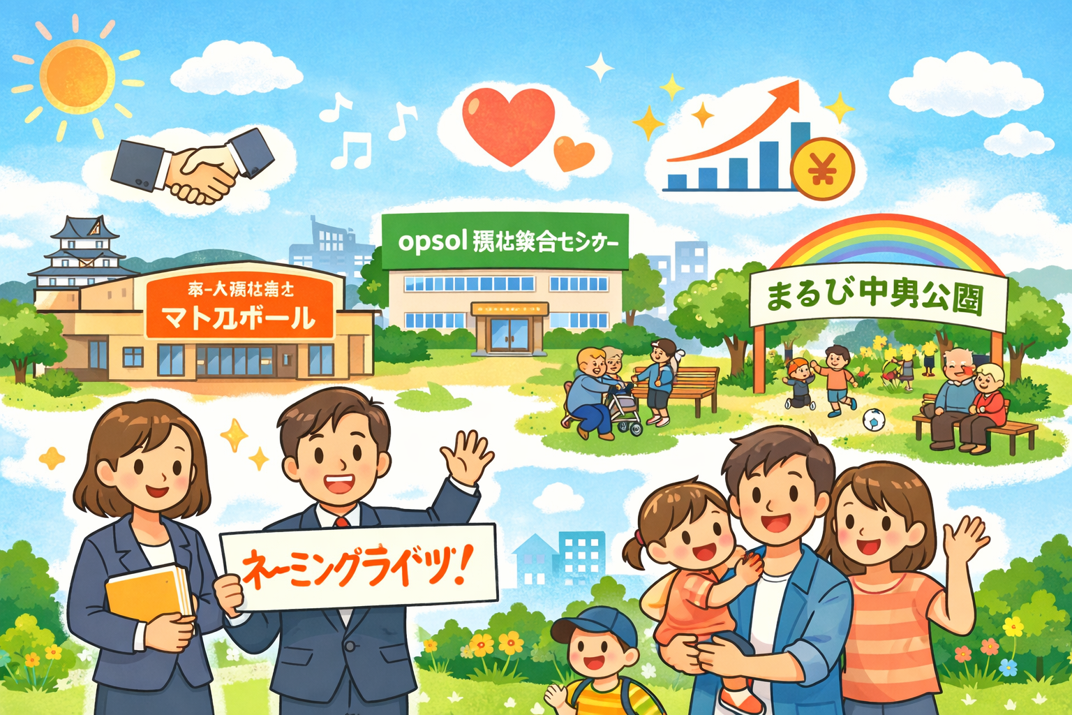 ネーミングライツは、大企業だけのものではありません。中小企業や地元企業でも、施設の特性に合わせて 地域への貢献やブランド発信の手段 として活用できます。名称を通じて地域に関わることで、住民にとっても企業にとってもプラスの循環が生まれます。